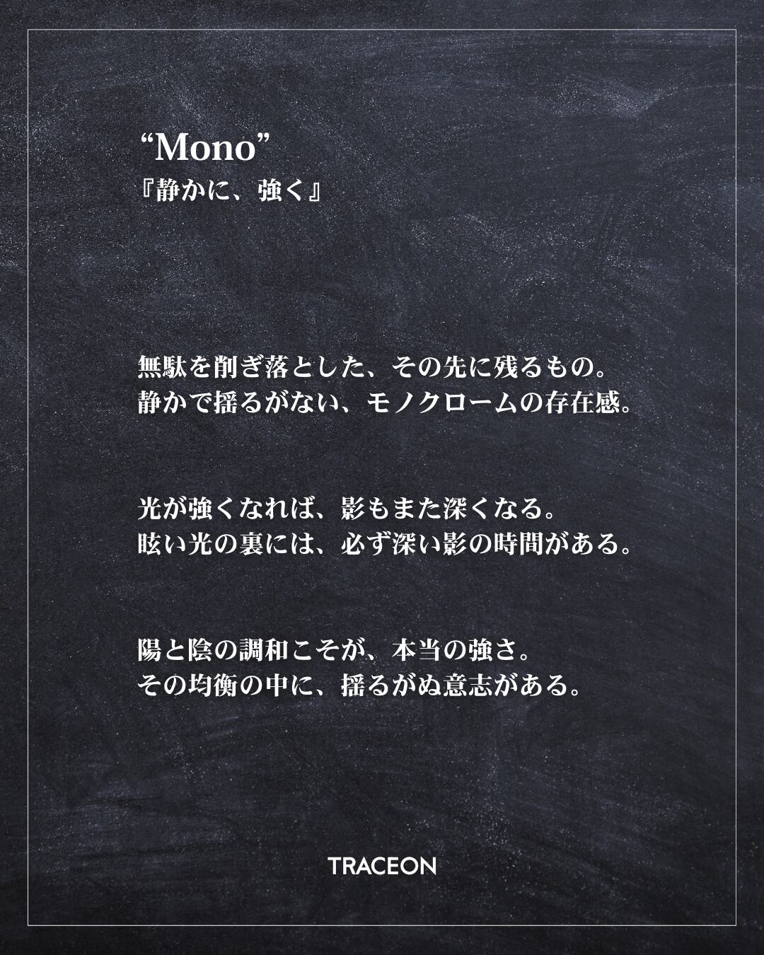 “MONO”は、余計な装飾を排し、ただ静かに存在する一枚です。